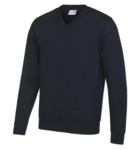 V-neckline sweatshirt. Ribbed neckline, cuffs and hemline. Soft cotton faced fabric creates ideal printing surface. Name label at back neck. Taped neck. Twin needle stitching for durability. Worldwide Responsible Accredited Production (WRAP) certified production. Set in sleeves.