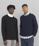 70% recycled cotton/30% recycled polyester. Seed stitch. Fashion fit. Set in sleeves. Ribbed collar, cuffs and hem. Unbranded size label. Recycled cotton is made from 100% pre-consumer waste.