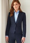 64% Polyester (30% Recycled), 34% Viscose, 2% LYCRA® Elastane. Short, 'slim fit', 1 button jacket, notch lapel, centre vent Centre back length at size 12R = 55.5cm